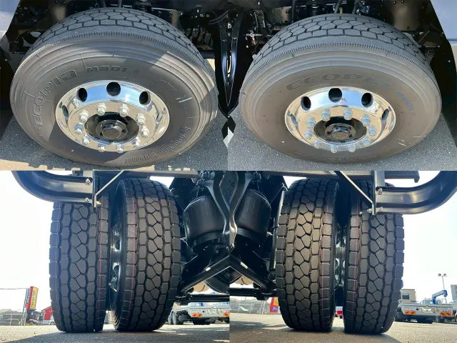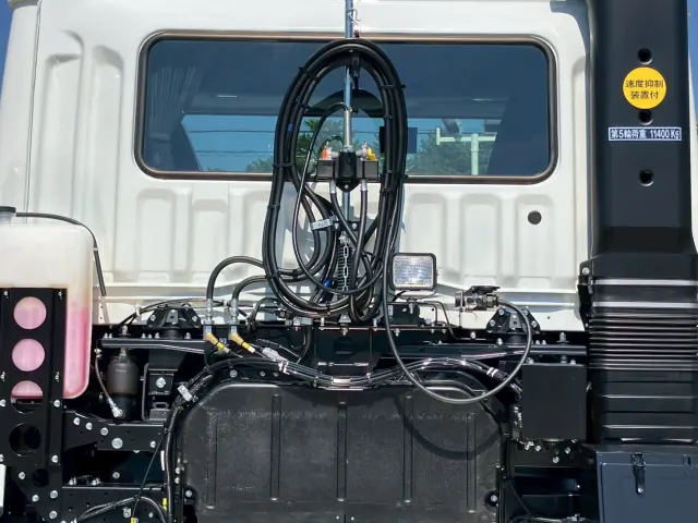 未使用車、AT、スーパーハイルーフ、E尺、第五輪荷重11,400kg、PTO付き、グレード/プレミアム、ベッド付き、ISRIシート、TCC、燃料タンク/アルミ、LEDリヤコンビランプ、メッキパーツ多数、ETC2.0、AW、エアシート、デジタコ、バックモニター